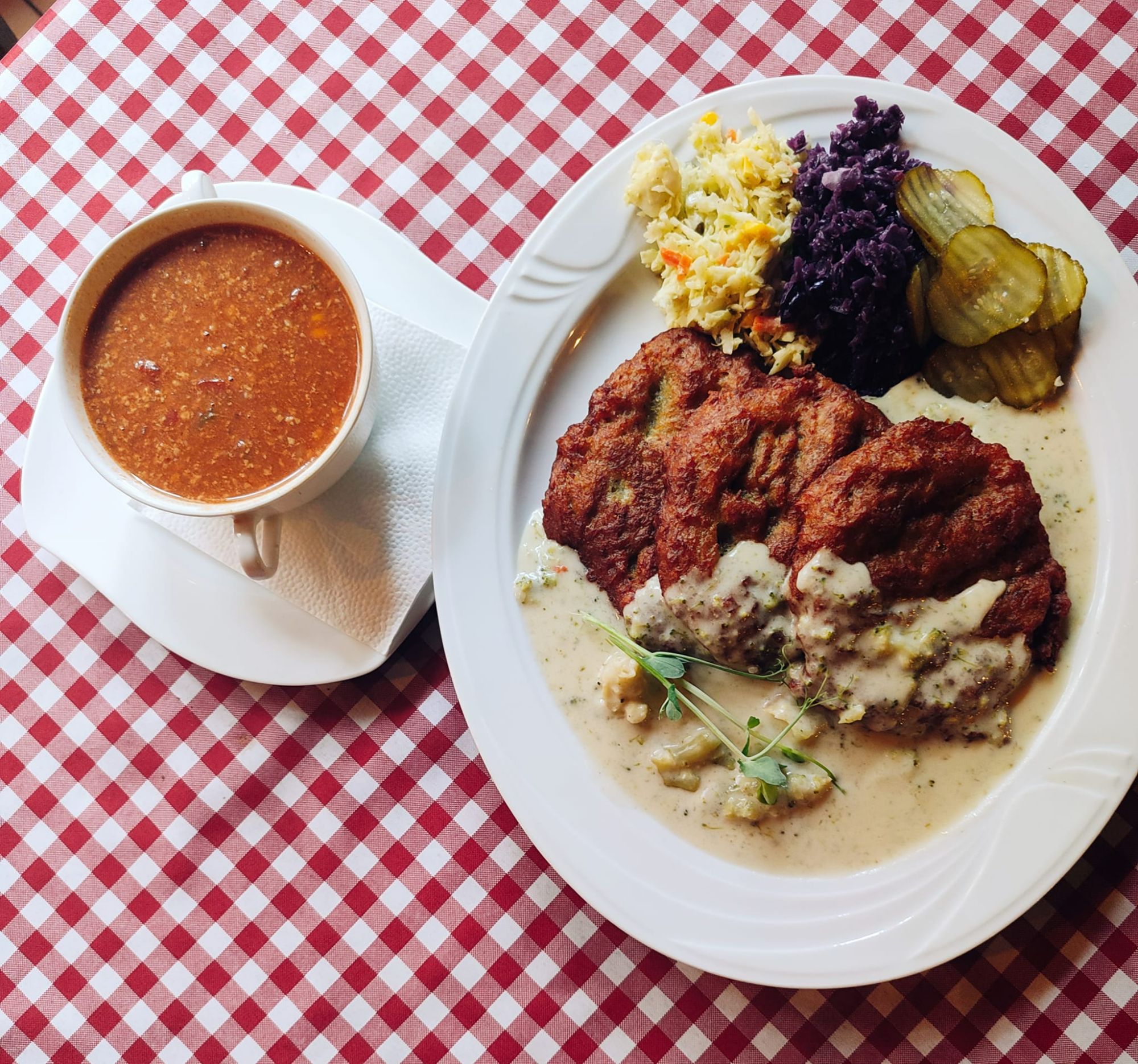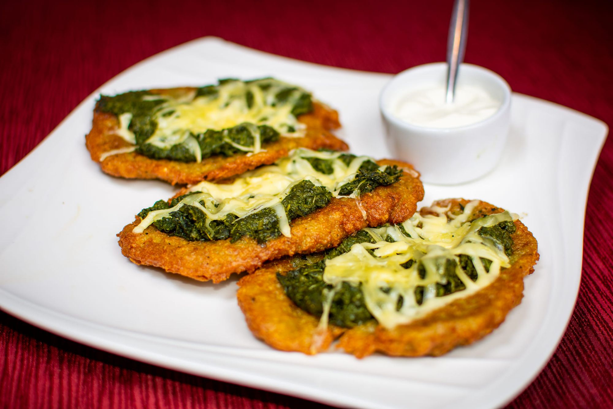 Każdy placek jest smażony tuż przed podaniem, dzięki czemu zachowuje idealną złocistą skórkę i wyjątkowy aromat.